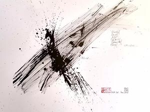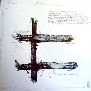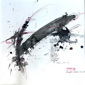 Oeuvre connue sur la plan local et déjà fortement appréciée en d’autres lieux d’art actuel. Mais je ne peux m’empécher d’évoquer un rapprochement certain dans le monde du baroque qui l’a fortement inspirée « dans le spirituel de l’art », qui affirmait que la voie vers la peinture se situe entre deux domaines : celui de l’abstrait et celui de » la forme corporelle ».